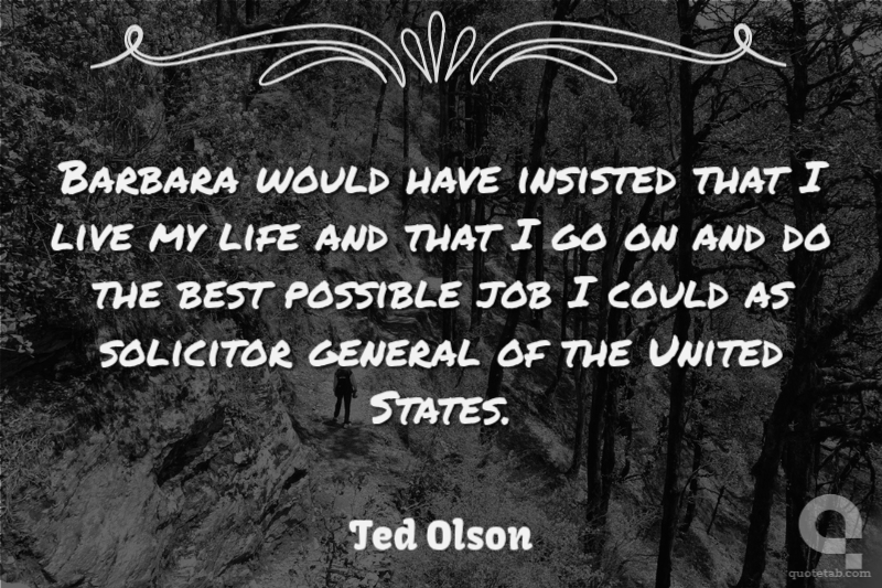 Barbara would have insisted that I live my life and that I go on and do the best possible job I could as solicitor general of the United States.