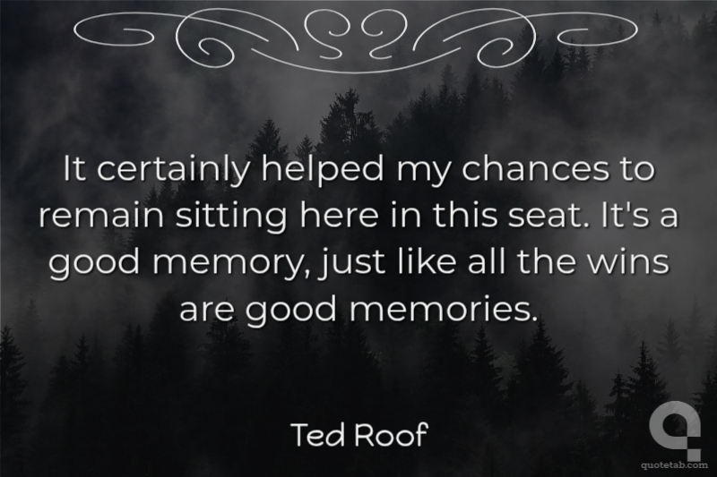 It certainly helped my chances to remain sitting here in this seat. It's a good memory, just like all the wins are good memories.