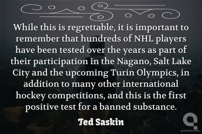 While this is regrettable, it is important to remember that hundreds of NHL players have been tested over the years as part of their participation in the Nagano, Salt Lake City and the upcoming Turin Olympics, in addition to many other international hockey competitions, and this is the first positive test for a banned substance.