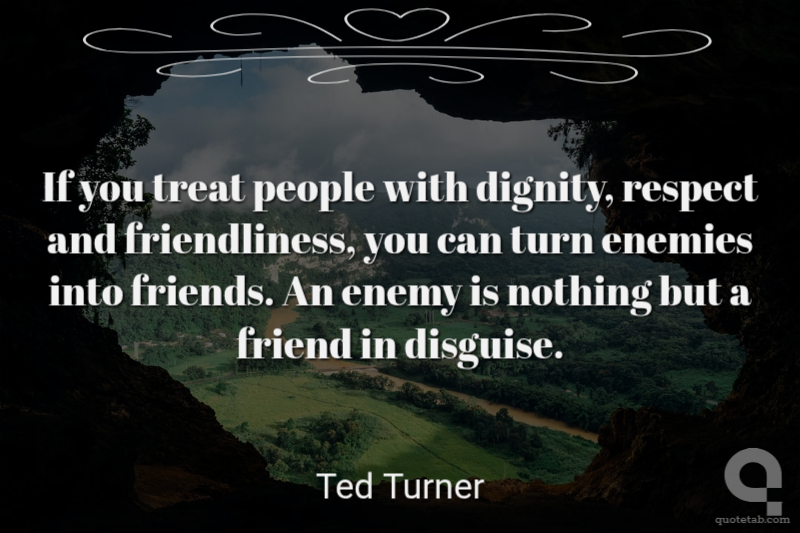 If you treat people with dignity, respect and friendliness, you can turn enemies into friends. An enemy is nothing but a friend in disguise.
