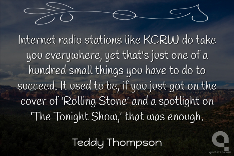 Internet radio stations like KCRW do take you everywhere, yet that's just one of a hundred small things you have to do to succeed. It used to be, if you just got on the cover of 'Rolling Stone' and a spotlight on 'The Tonight Show,' that was enough.