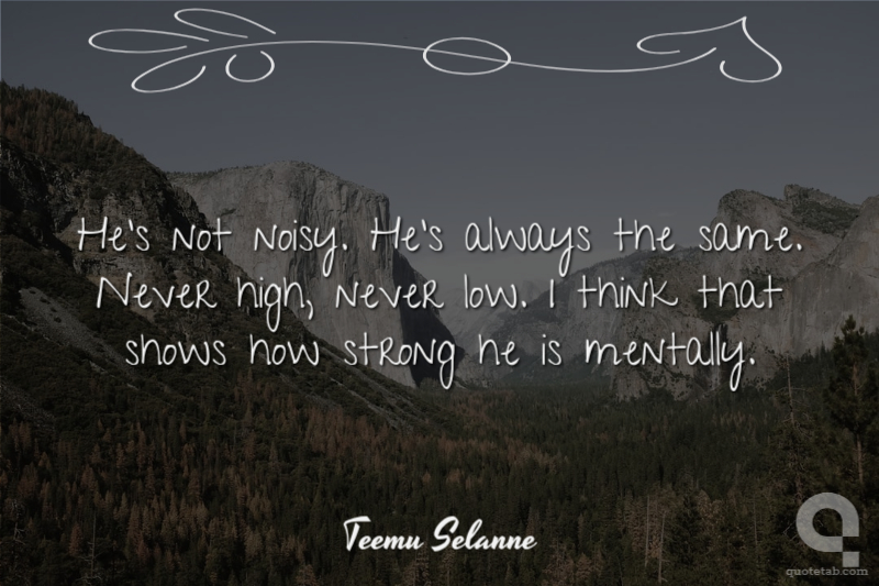 He's not noisy. He's always the same. Never high, never low. I think that shows how strong he is mentally.