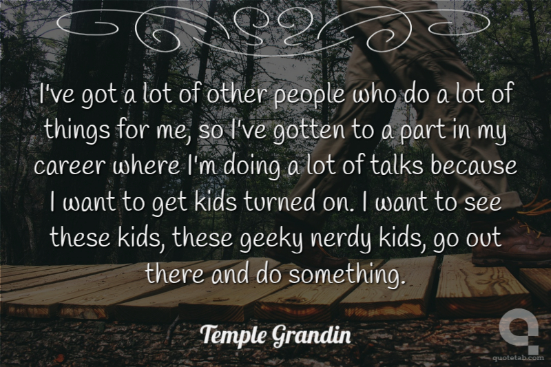 I've got a lot of other people who do a lot of things for me, so I've gotten to a part in my career where I'm doing a lot of talks because I want to get kids turned on. I want to see these kids, these geeky nerdy kids, go out there and do something.