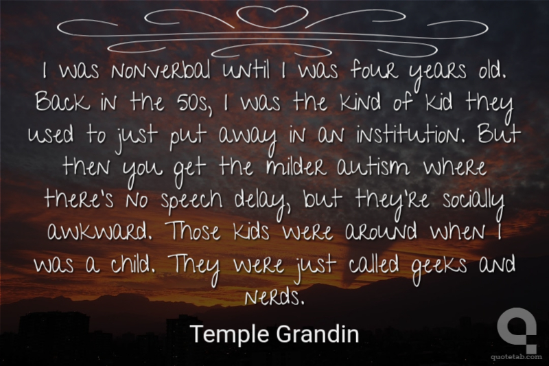 I was nonverbal until I was four years old. Back in the 50s, I was the kind of kid they used to just put away in an institution. But then you get the milder autism where there's no speech delay, but they're socially awkward. Those kids were around when I was a child. They were just called geeks and nerds.