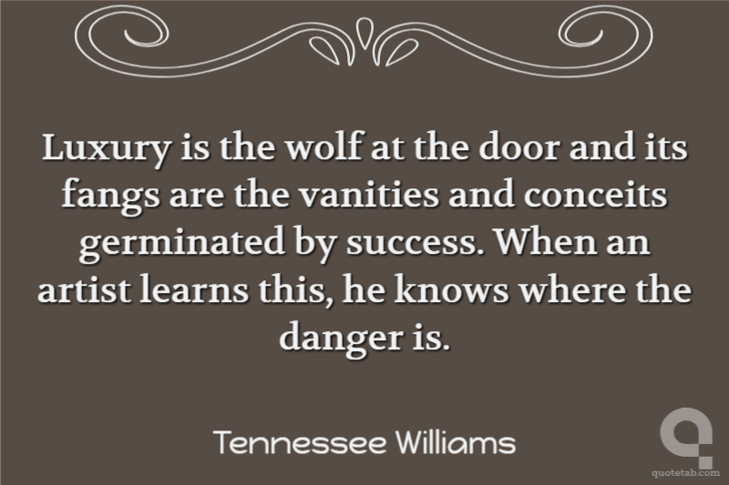 Luxury is the wolf at the door and its fangs are the vanities and conceits germinated by success. When an artist learns this, he knows where the danger is.