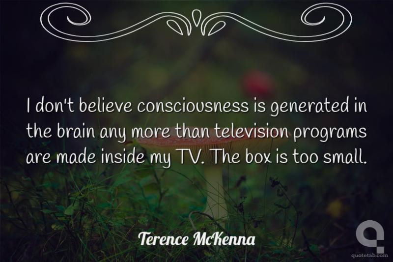 I don't believe consciousness is generated in the brain any more than television programs are made inside my TV. The box is too small.