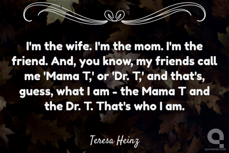 I'm the wife. I'm the mom. I'm the friend. And, you know, my friends call me 'Mama T,' or 'Dr. T,' and that's, guess, what I am - the Mama T and the Dr. T. That's who I am.