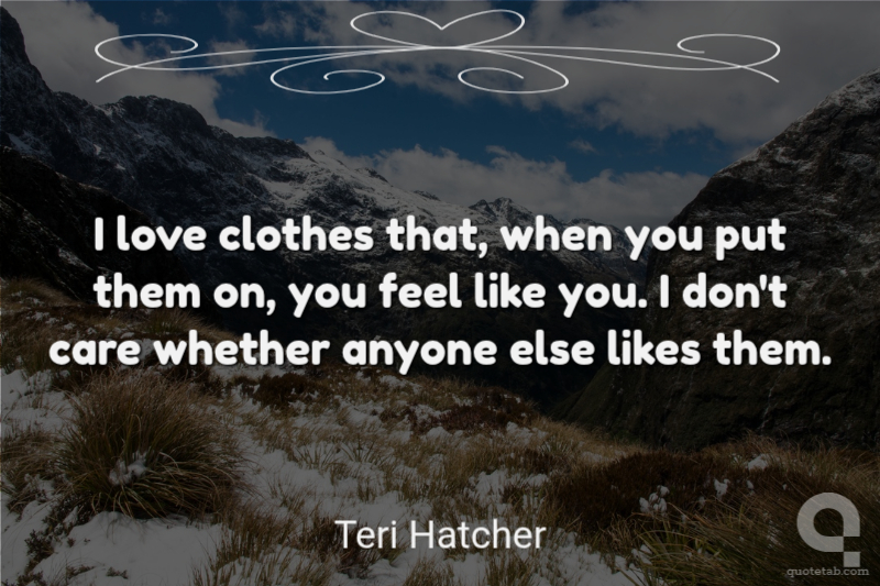 I love clothes that, when you put them on, you feel like you. I don't care whether anyone else likes them.