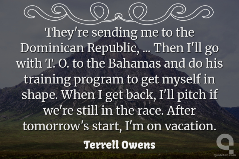 They're sending me to the Dominican Republic, ... Then I'll go with T. O. to the Bahamas and do his training program to get myself in shape. When I get back, I'll pitch if we're still in the race. After tomorrow's start, I'm on vacation.