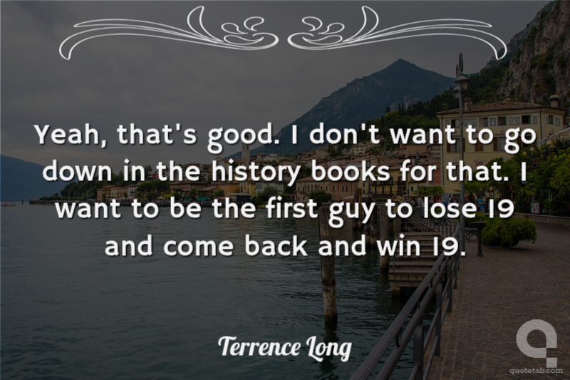 Yeah, that's good. I don't want to go down in the history books for that. I want to be the first guy to lose 19 and come back and win 19.