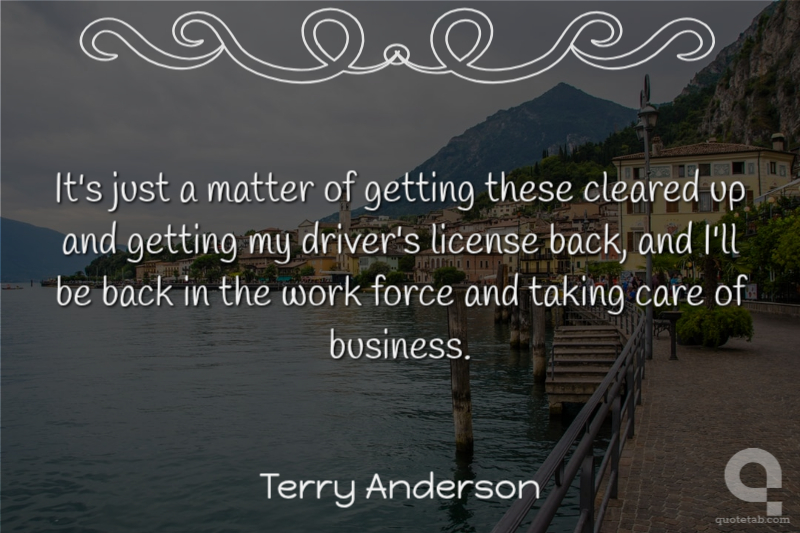 It's just a matter of getting these cleared up and getting my driver's license back, and I'll be back in the work force and taking care of business.