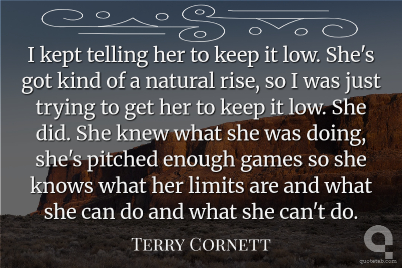 I kept telling her to keep it low. She's got kind of a natural rise, so I was just trying to get her to keep it low. She did. She knew what she was doing, she's pitched enough games so she knows what her limits are and what she can do and what she can't do.