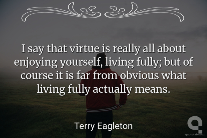 I say that virtue is really all about enjoying yourself, living fully; but of course it is far from obvious what living fully actually means.