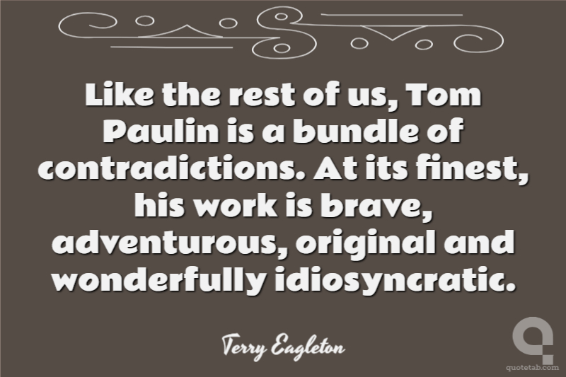Like the rest of us, Tom Paulin is a bundle of contradictions. At its finest, his work is brave, adventurous, original and wonderfully idiosyncratic.