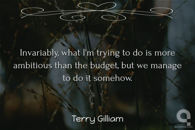 Invariably, what I'm trying to do is more ambitious than the budget, but we manage to do it somehow.