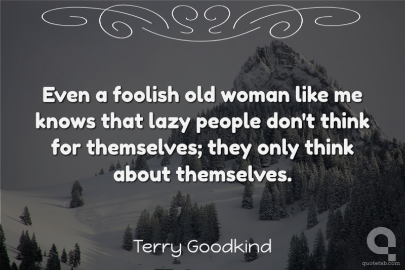 Even a foolish old woman like me knows that lazy people don't think for themselves; they only think about themselves.