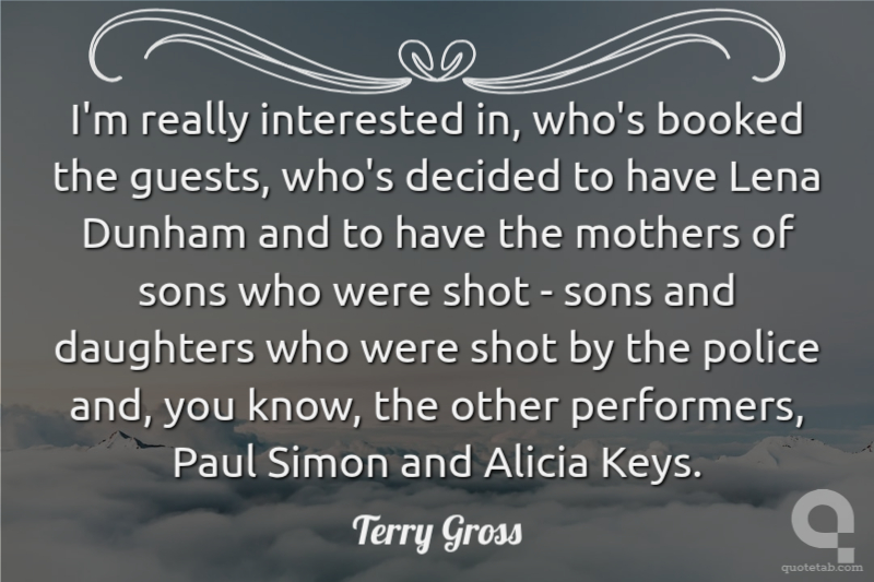 I'm really interested in, who's booked the guests, who's decided to have Lena Dunham and to have the mothers of sons who were shot - sons and daughters who were shot by the police and, you know, the other performers, Paul Simon and Alicia Keys.