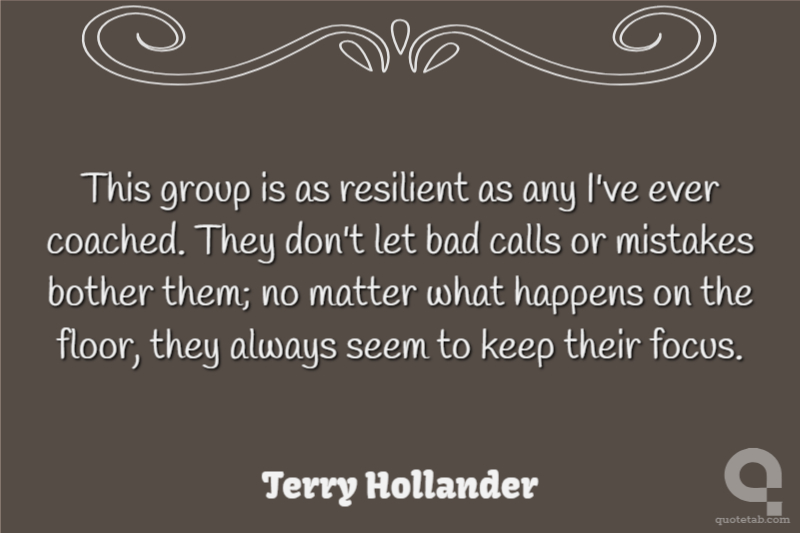 This group is as resilient as any I've ever coached. They don't let bad calls or mistakes bother them; no matter what happens on the floor, they always seem to keep their focus.