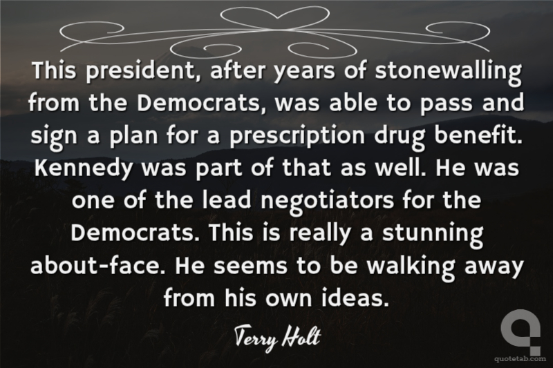 This president, after years of stonewalling from the Democrats, was able to pass and sign a plan for a prescription drug benefit. Kennedy was part of that as well. He was one of the lead negotiators for the Democrats. This is really a stunning about-face. He seems to be walking away from his own ideas.