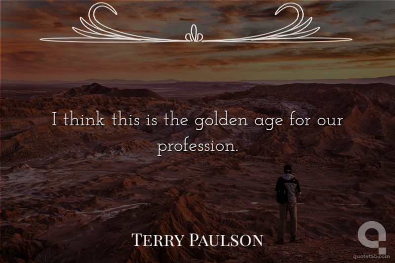 I think this is the golden age for our profession.