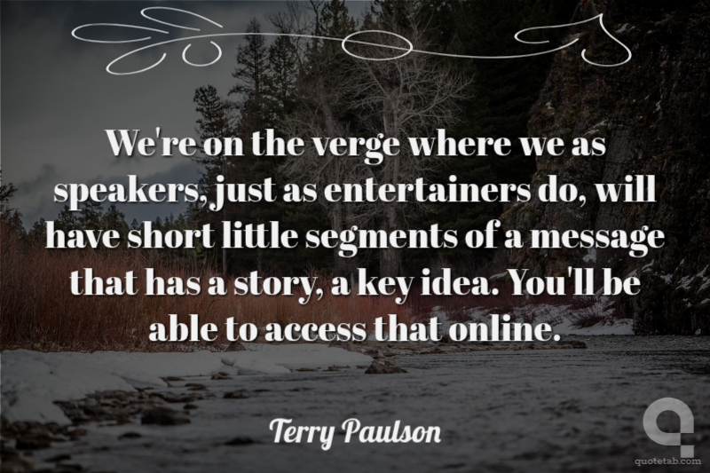 We're on the verge where we as speakers, just as entertainers do, will have short little segments of a message that has a story, a key idea. You'll be able to access that online.