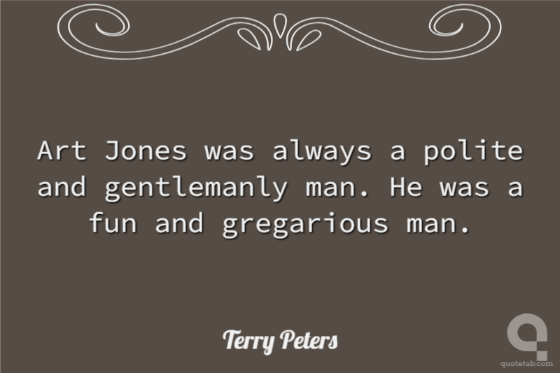 Art Jones was always a polite and gentlemanly man. He was a fun and gregarious man.