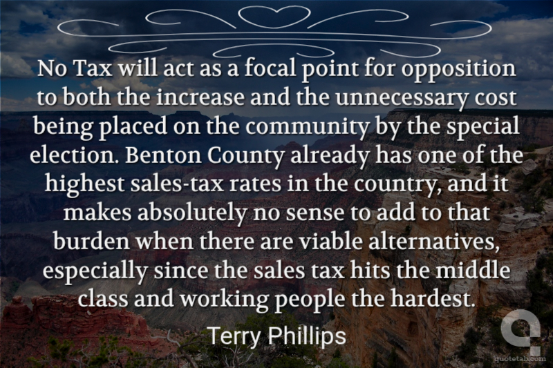 No Tax will act as a focal point for opposition to both the increase and the unnecessary cost being placed on the community by the special election. Benton County already has one of the highest sales-tax rates in the country, and it makes absolutely no sense to add to that burden when there are viable alternatives, especially since the sales tax hits the middle class and working people the hardest.