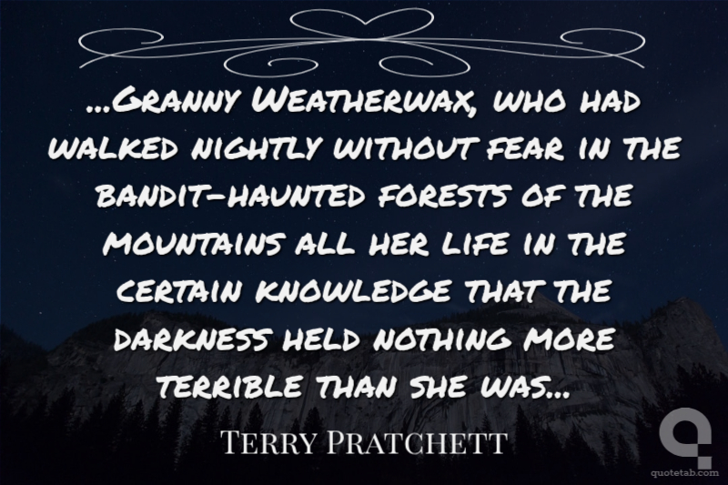 ...Granny Weatherwax, who had walked nightly without fear in the bandit-haunted forests of the mountains all her life in the certain knowledge that the darkness held nothing more terrible than she was...