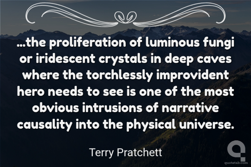 ...the proliferation of luminous fungi or iridescent crystals in deep caves where the torchlessly improvident hero needs to see is one of the most obvious intrusions of narrative causality into the physical universe.