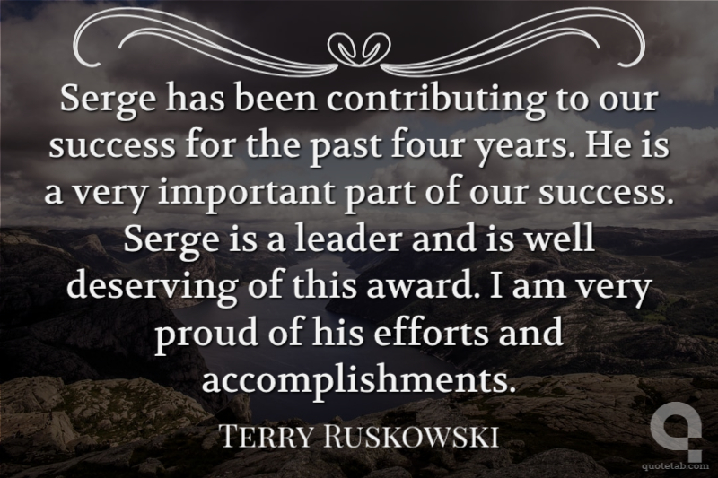 Serge has been contributing to our success for the past four years. He is a very important part of our success. Serge is a leader and is well deserving of this award. I am very proud of his efforts and accomplishments.