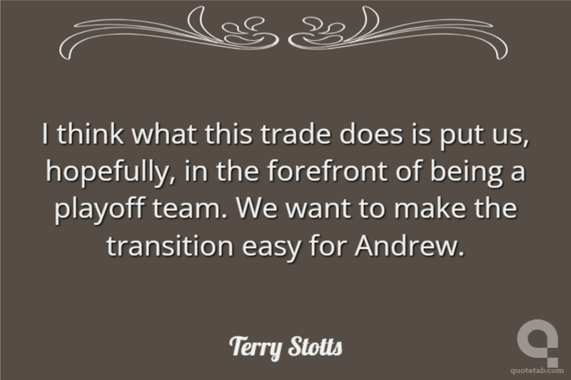 I think what this trade does is put us, hopefully, in the forefront of being a playoff team. We want to make the transition easy for Andrew.