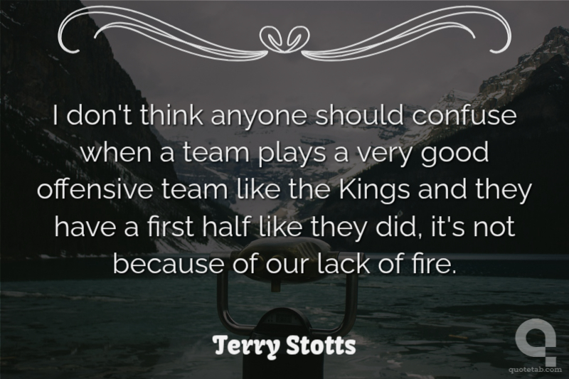 I don't think anyone should confuse when a team plays a very good offensive team like the Kings and they have a first half like they did, it's not because of our lack of fire.