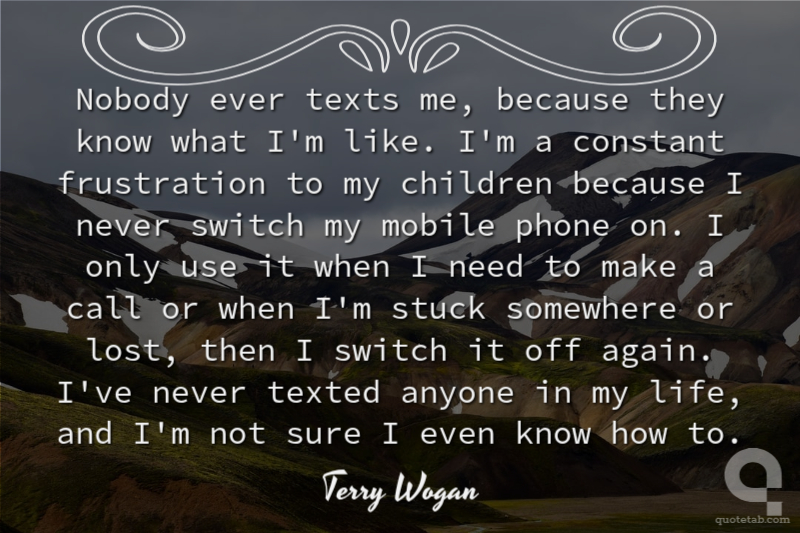 Nobody ever texts me, because they know what I'm like. I'm a constant frustration to my children because I never switch my mobile phone on. I only use it when I need to make a call or when I'm stuck somewhere or lost, then I switch it off again. I've never texted anyone in my life, and I'm not sure I even know how to.