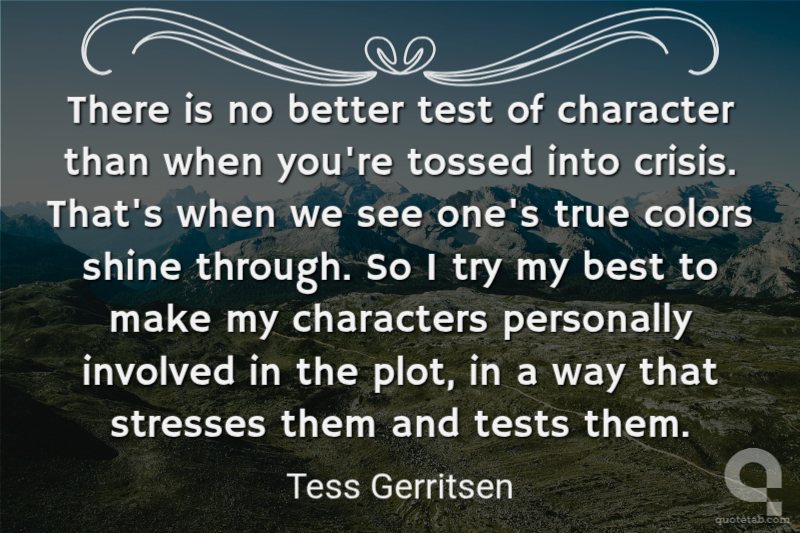 There is no better test of character than when you're tossed into crisis. That's when we see one's true colors shine through. So I try my best to make my characters personally involved in the plot, in a way that stresses them and tests them.