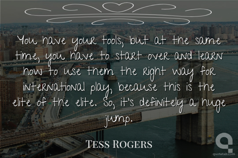 You have your tools, but at the same time, you have to start over and learn how to use them the right way for international play, because this is the elite of the elite. So, it's definitely a huge jump.