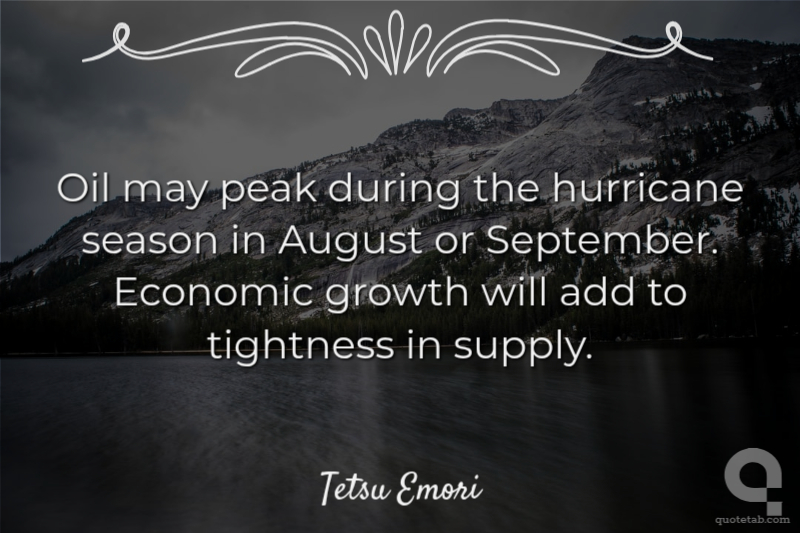 Oil may peak during the hurricane season in August or September. Economic growth will add to tightness in supply.