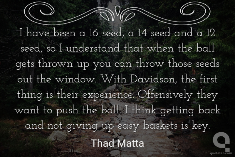 I have been a 16 seed, a 14 seed and a 12 seed, so I understand that when the ball gets thrown up you can throw those seeds out the window. With Davidson, the first thing is their experience. Offensively they want to push the ball. I think getting back and not giving up easy baskets is key.