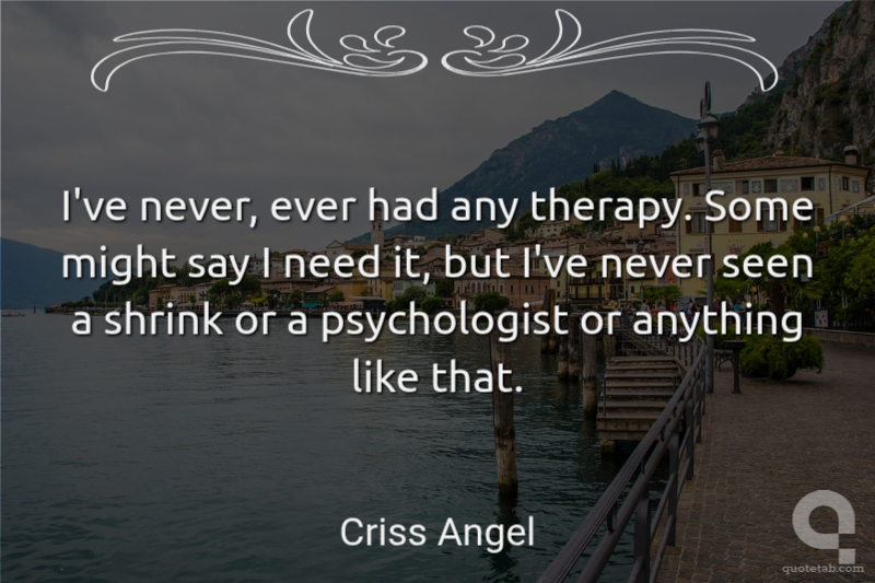 I've never, ever had any therapy. Some might say I need it, but I've never seen a shrink or a psychologist or anything like that.