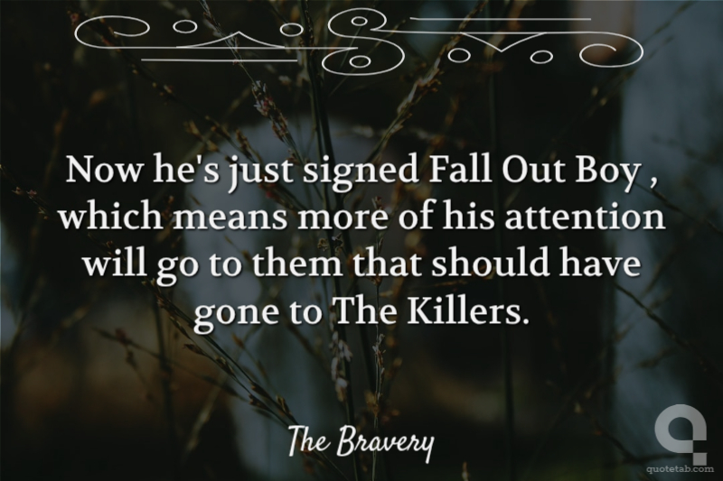 Now he's just signed Fall Out Boy , which means more of his attention will go to them that should have gone to The Killers.