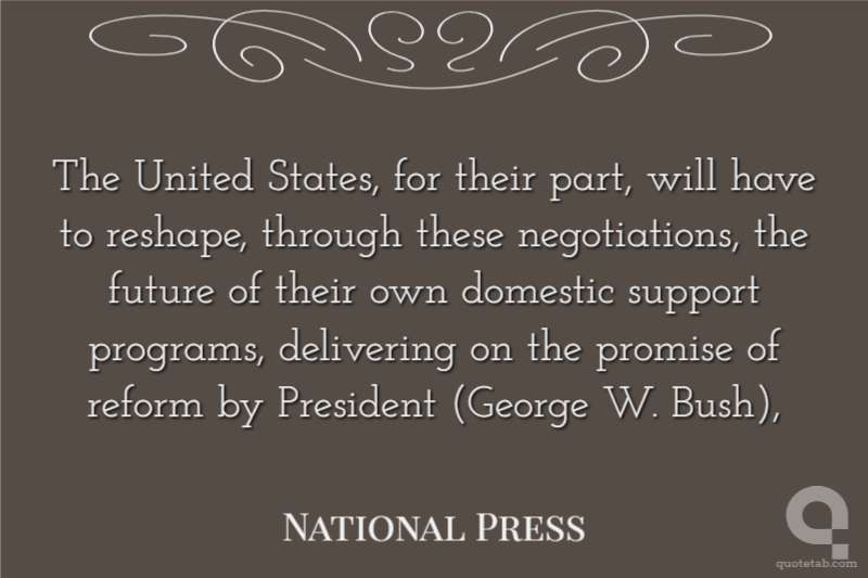 The United States, for their part, will have to reshape, through these negotiations, the future of their own domestic support programs, delivering on the promise of reform by President (George W. Bush),