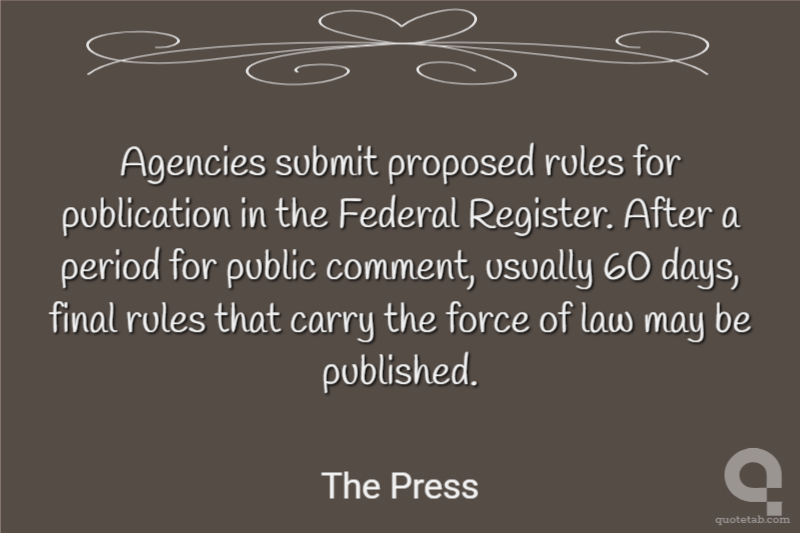 Agencies submit proposed rules for publication in the Federal Register. After a period for public comment, usually 60 days, final rules that carry the force of law may be published.