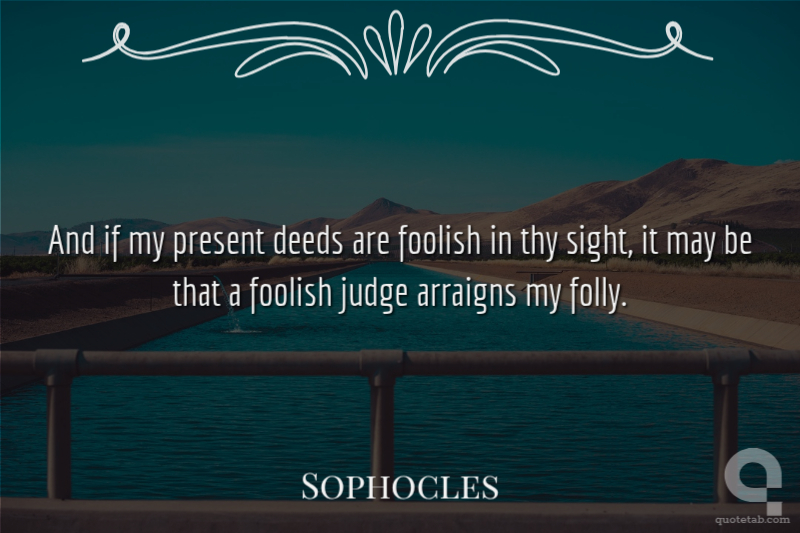 And if my present deeds are foolish in thy sight, it may be that a foolish judge arraigns my folly.