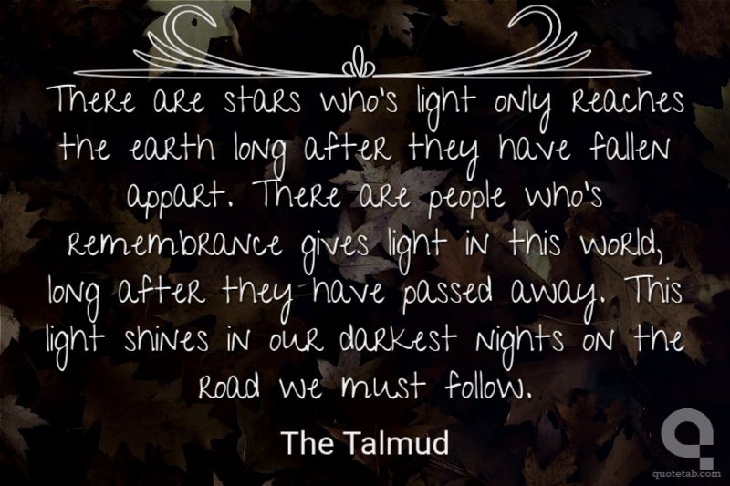 There are stars who's light only reaches the earth long after they have fallen appart. There are people who's remembrance gives light in this world, long after they have passed away. This light shines in our darkest nights on the road we must follow.