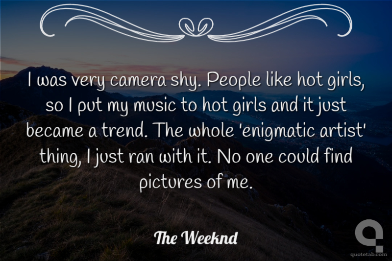 I was very camera shy. People like hot girls, so I put my music to hot girls and it just became a trend. The whole 'enigmatic artist' thing, I just ran with it. No one could find pictures of me.