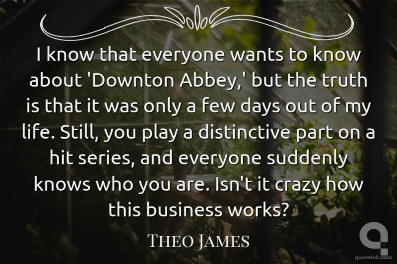 I know that everyone wants to know about 'Downton Abbey,' but the truth is that it was only a few days out of my life. Still, you play a distinctive part on a hit series, and everyone suddenly knows who you are. Isn't it crazy how this business works?