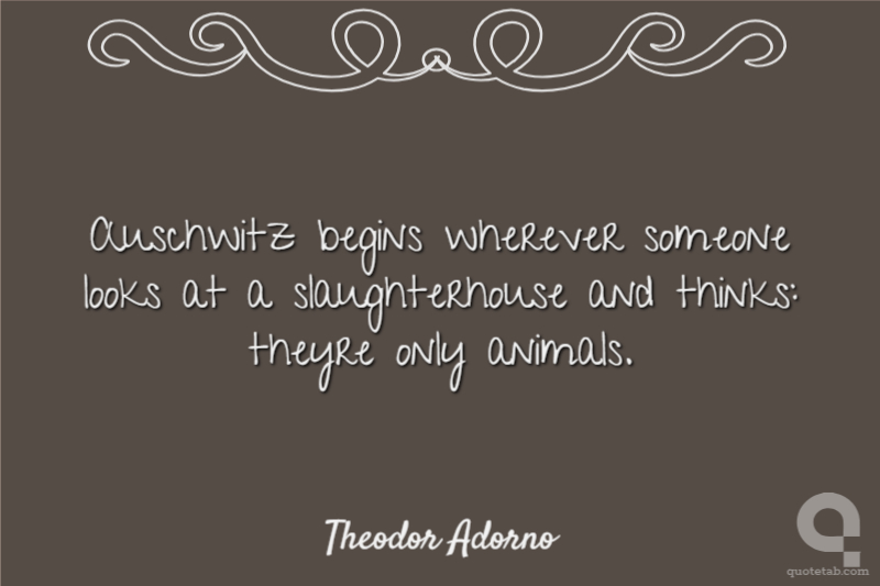Auschwitz begins wherever someone looks at a slaughterhouse and thinks: theyre only animals.