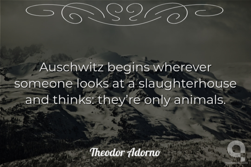 Auschwitz begins wherever someone looks at a slaughterhouse and thinks: theyre only animals.