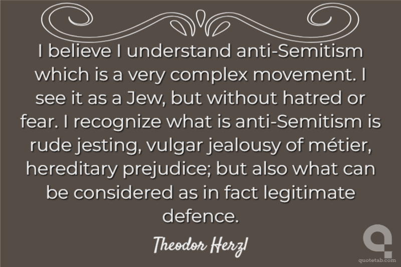 I believe I understand anti-Semitism which is a very complex movement. I see it as a Jew, but without hatred or fear. I recognize what is anti-Semitism is rude jesting, vulgar jealousy of métier, hereditary prejudice; but also what can be considered as in fact legitimate defence.