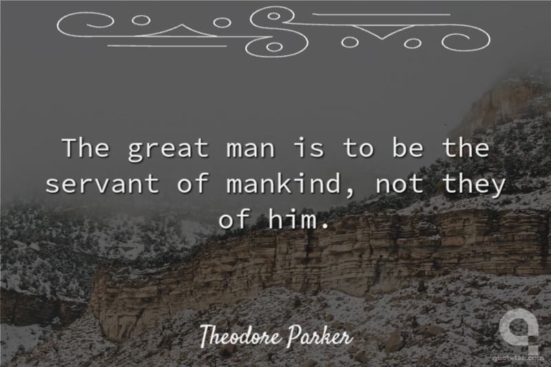 The use of great men is to serve the little men, to take care of the human race, and act as practical interpreters of justice and truth.