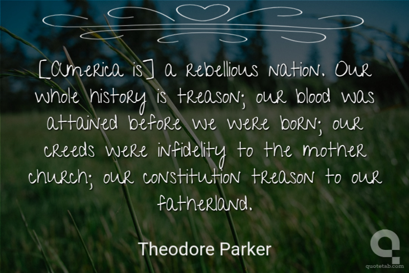 [America is] a rebellious nation. Our whole history is treason; our blood was attained before we were born; our creeds were infidelity to the mother church; our constitution treason to our fatherland.